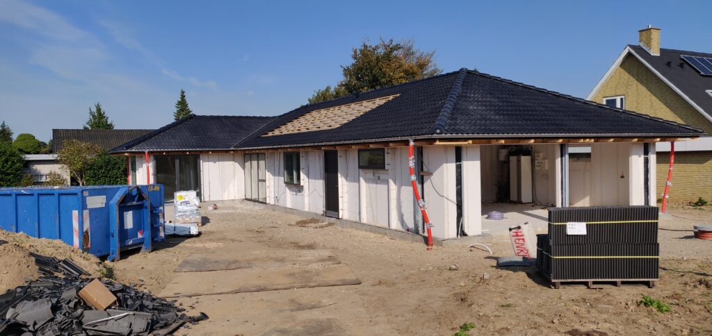 Så kom der tag på huset, og udtørring af påbegyndes.